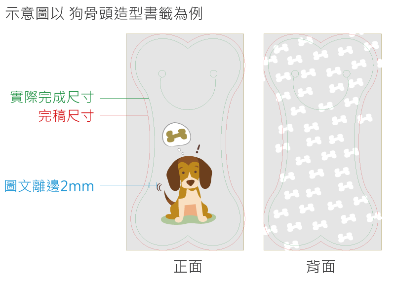 - 創意書籤製作檔案時,AI及Cdr檔案文字皆須轉曲線或建立外框字,PS製作請將圖層平面化。請清除不需要用到的文字雜點,避免出現掉字或印出不明文字的問題。