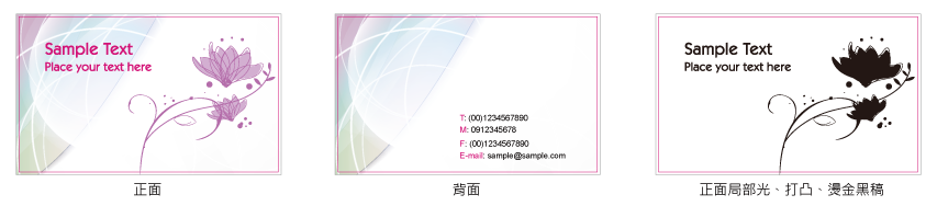 - 局部上光名片向量黑稿一律做於名片的正面,因此若要做於背面時,請務必註明清楚。