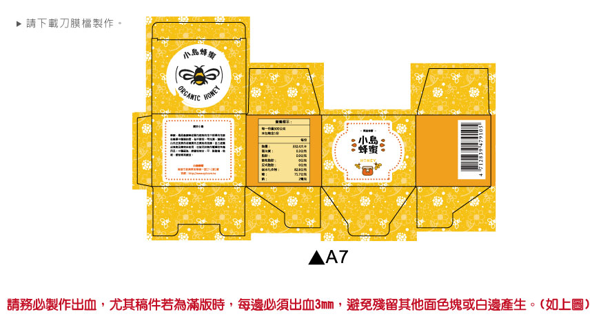2. A製作檔案時請注意「刀模展開圖的長、寬皆不可小於8cm、糊耳不可小於1.5cm、彩盒開窗需離摺邊1.5cm」,檔案請各邊出血3mm。