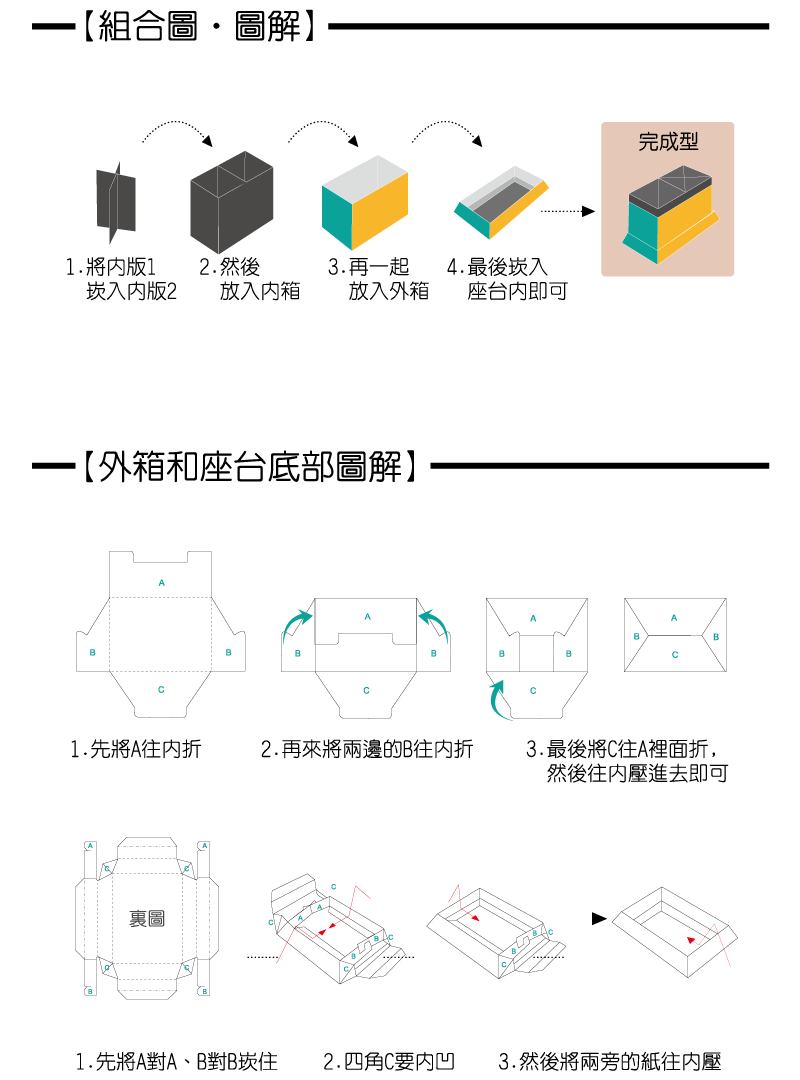 - 二格筆筒組裝方式如附圖,請對照組裝。