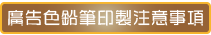 1. 訂製廣告鉛筆印刷稿件請提供CMYK 各100,並為AI向量圖檔