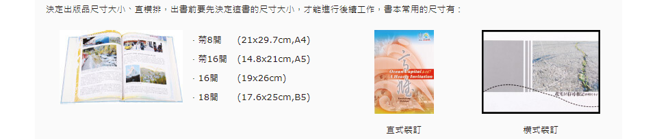 我們具有多年的書籍印刷、美編設計的經驗及服務人員。可依據您提供的條件來進行書籍出版規畫﹐不論您只有手寫稿、文字檔,或有相片﹐但沒影像檔…等諸多情形﹐我們專業的企畫人員均會以無比的耐心來進行溝通規畫﹐讓您享有愉快的出版體驗。